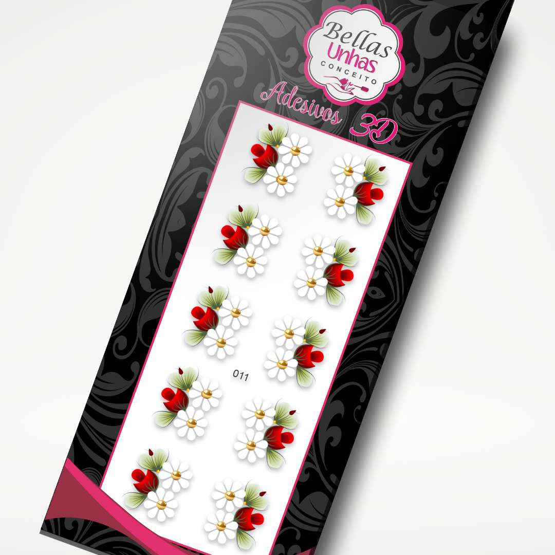 Adesivos para Unhas - Margaridas Dupla c/ vermelho